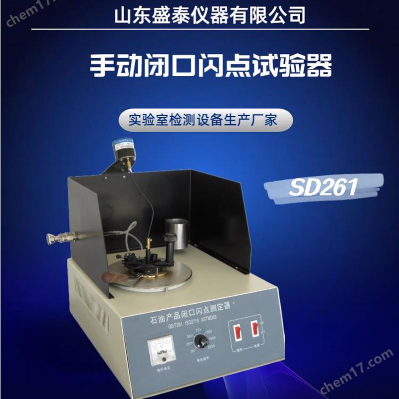 SD261闭口闪点仪是按照中华人民共和国国家标准GB/T 261-2008《闪点的测定 宾斯基-马丁闭口杯法》所规定的要求设计制造的,适用于按GB/T 261-2008标准所规定的方法,测定闪点高于40℃的石油产品试样的闭口杯法闪点。手动柴油闭口闪点试验器
